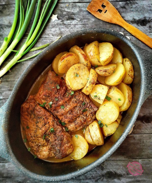 Обещавам ви невероятно крехко и ароматно месо, а картофите просто се топят в устата.:)
