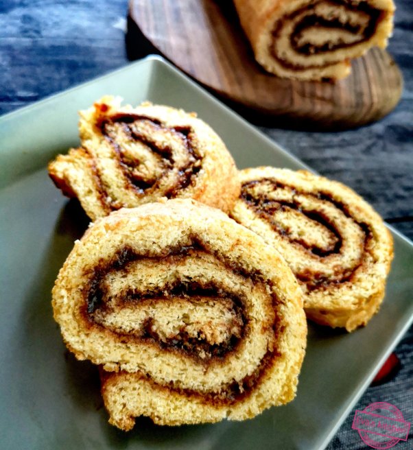 След това развийте рулото, намажете го обилно с шипков мармалад и отново завийте на руло.