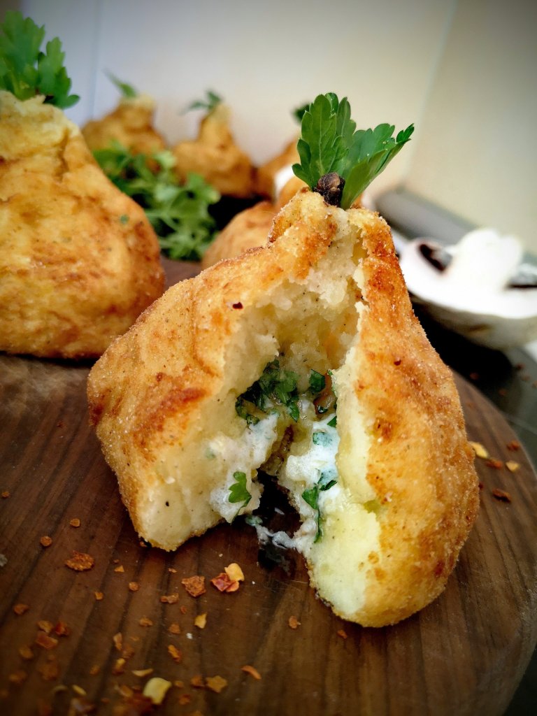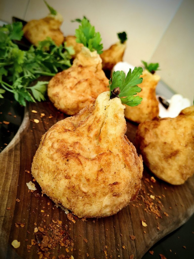 Изпържете “крушите” в силно загрята маслена баня до хубав златист цвят.