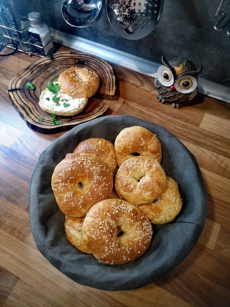 Обожавам бейгъли! Обожавам! Още от времето когато живеех в Щатите, това беше нещото което ужасно много обичах- с крема сирене, с яйце, шунка или сьомга.. Толкова да ги обичам тези бейгъли, че дори кучето си кръстих така. Бигълът Бейгъл. Откачено, а? 🙂