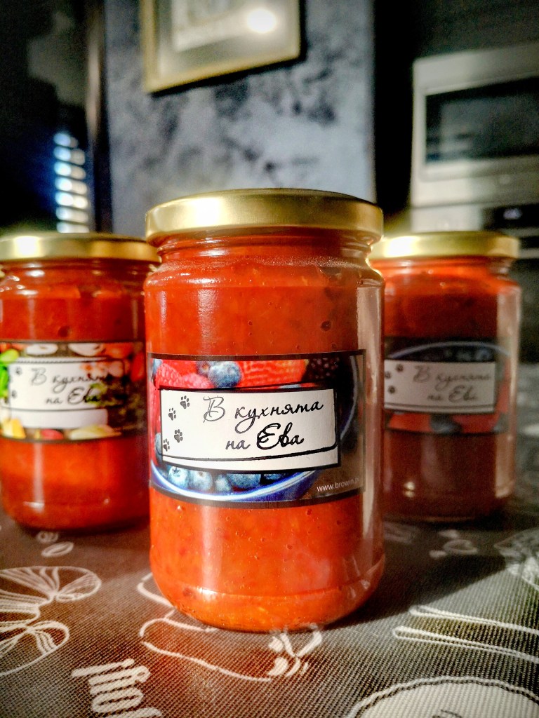 Изсипете в бурканчета и стерилизирайте 20-25 минути от момента на завиране.
