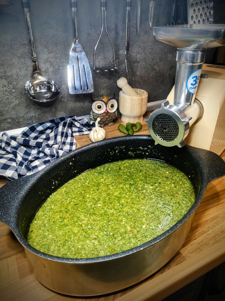 И понеже за зимата си трябва и нещо лютичко, днес приготвих тази разядка от смлени люти чушки, и преди да ви кажа каквото и да било повече по приготовлението й, ви умолявам: