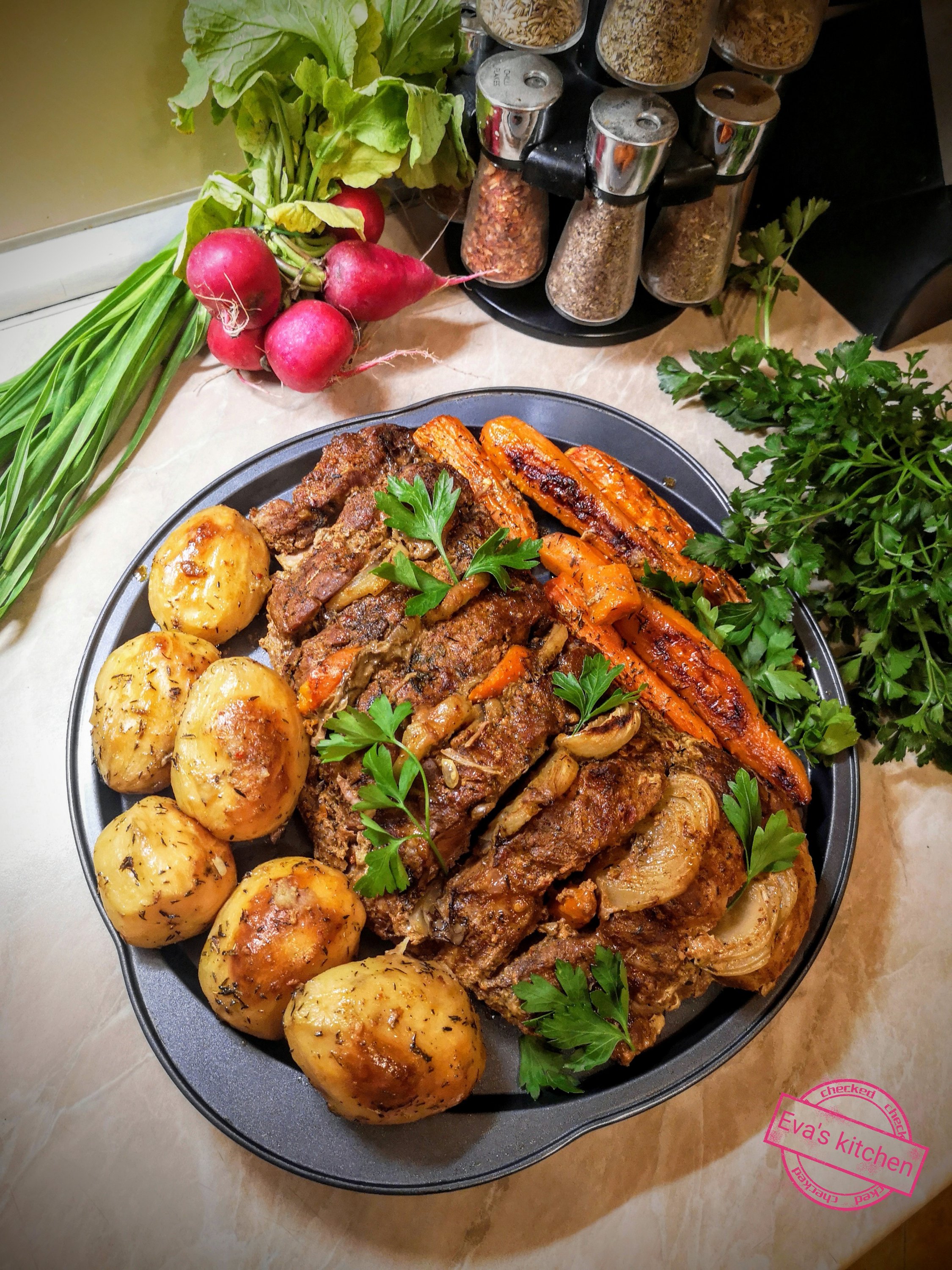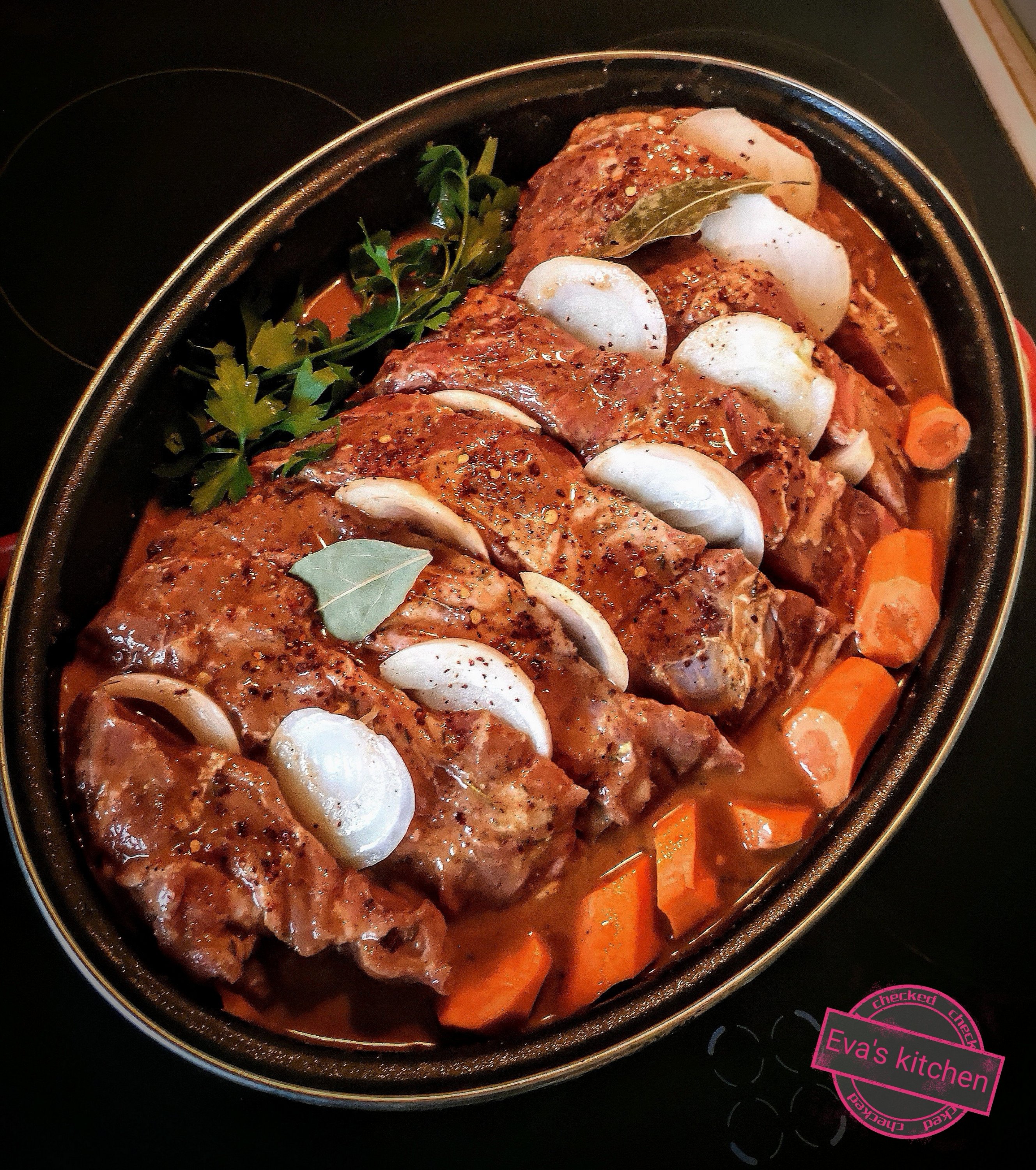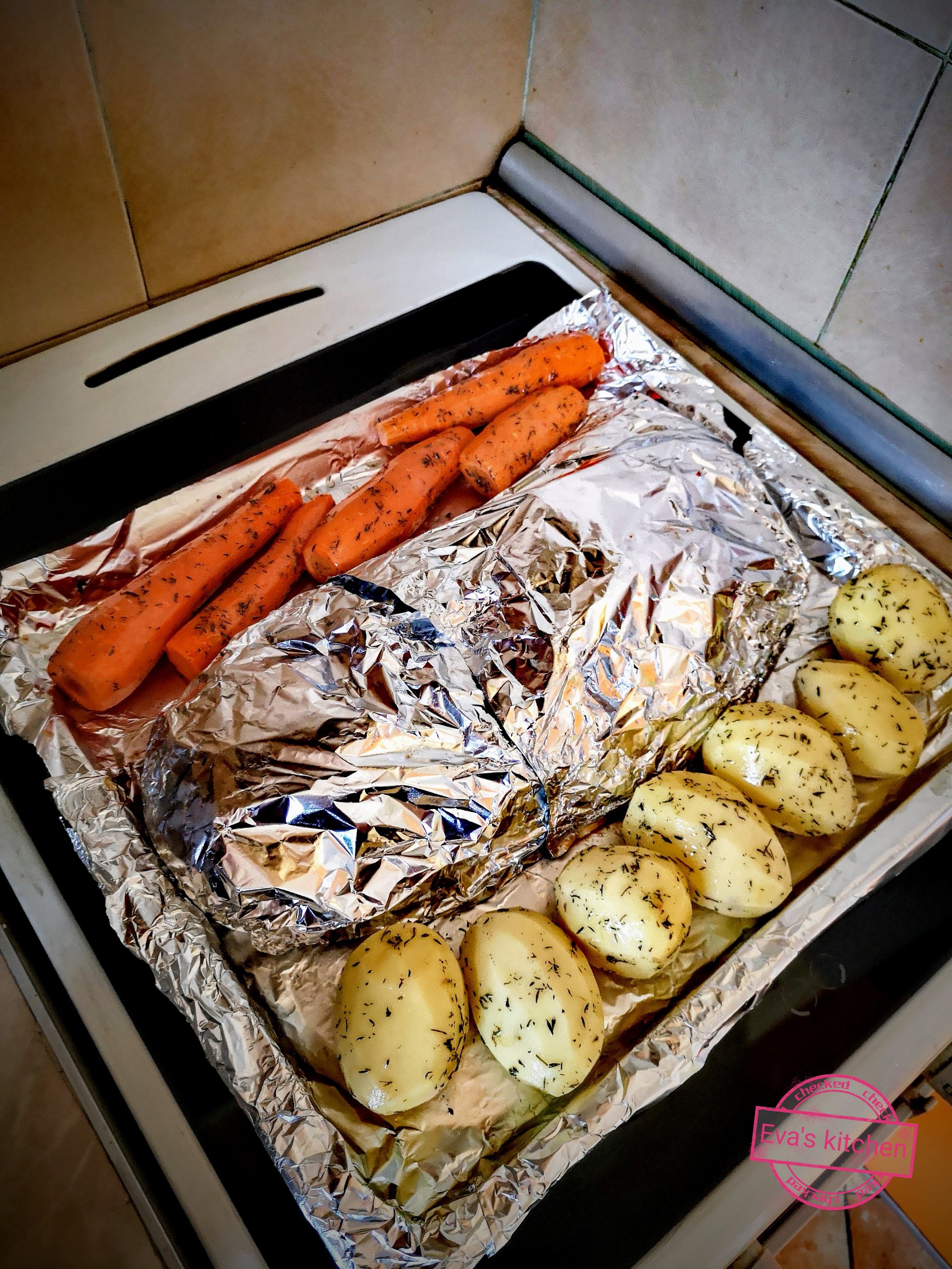 Сложете ястието във фурната и запечете на горен реотан на 220 градуса докато розичките хванат лек загар.